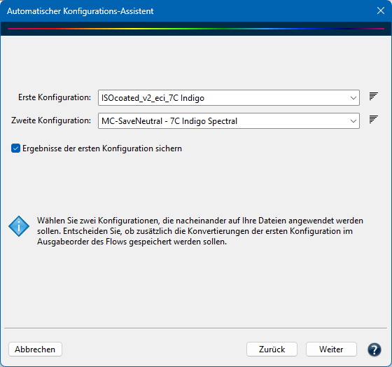 Wählen Sie dafür einfach die beiden Konfigurationen, die für die Konvertierung verwendet werden sollen. Sie werden dann automatisch in der angegebenen Reihenfolge angewendet.
