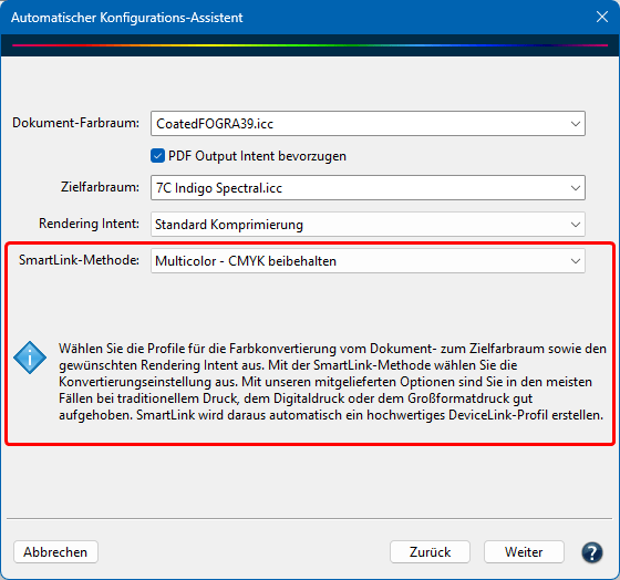 Neue SmartLink-Methode für das Konvertieren nach Multicolor unter Beibehaltung der CMYK-Farbräume