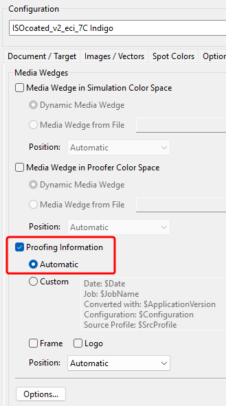- The Proofing Information specified in the Proofing tab, which are indicated in the media wedge of the converted file, did not take into account that the file to be proofed might contain a different output intent instead of the Document Color Space or a different Target Color Space. The conversion itself was correct. This information error has been fixed for both the activated checkboxes Prefer PDF Output Intent for the Document Color Space and Maintain PDF Output Intent for the Target Color Space. (Ticket #234261)